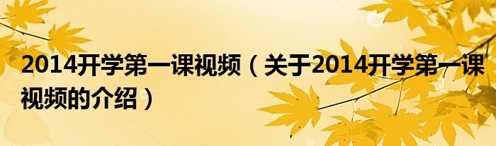 大家好,小安来为大家解答以上的问题。2014开学第一课视频,关于2014开学第一课视频的介绍很多人还不知道,现在让我们一起来看看吧!