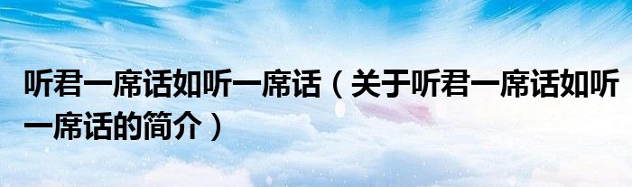 本文关于听君一席话如听一席话的简介就讲解完毕,希望对大家有所帮助。