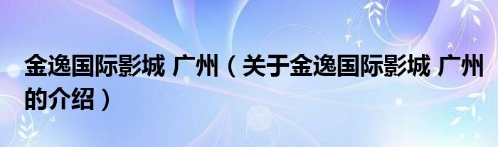 大家好,小安来为大家解答以上的问题。金逸国际影城 广州,关于金逸国际影城 广州的介绍很多人还不知道,现在让我们一起来看看吧!