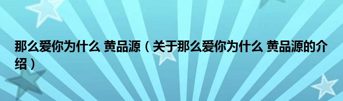 大家好,小安来为大家解答以上的问题。那么爱你为什么 黄品源,关于那么爱你为什么 黄品源的介绍很多人还不知道,现在让我们一起来看看吧!
