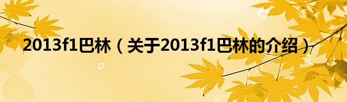 1、2013年巴林大奖赛是2013年世界一级方程式锦标赛的第四场分站赛事,于4月19日至21日在巴林萨基尔的巴林国际赛道举行。