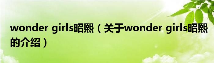 大家好,小安来为大家解答以上的问题。wonder girls昭熙,关于wonder girls昭熙的介绍很多人还不知道,现在让我们一起来看看吧!