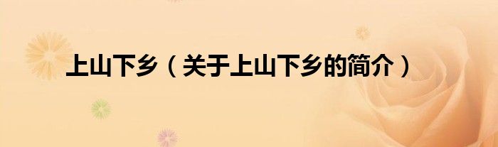 本文关于上山下乡的简介就讲解完毕,希望对大家有所帮助。