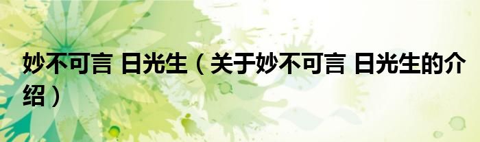 大家好,小安来为大家解答以上的问题。妙不可言 日光生,关于妙不可言 日光生的介绍很多人还不知道,现在让我们一起来看看吧!