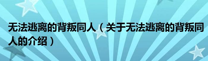 大家好,小安来为大家解答以上的问题。无法逃离的背叛同人,关于无法逃离的背叛同人的介绍很多人还不知道,现在让我们一起来看看吧!