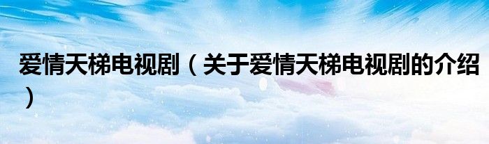 大家好,小安来为大家解答以上的问题。爱情天梯电视剧,关于爱情天梯电视剧的介绍很多人还不知道,现在让我们一起来看看吧!