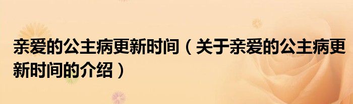 大家好,小安来为大家解答以上的问题。亲爱的公主病更新时间,关于亲爱的公主病更新时间的介绍很多人还不知道,现在让我们一起来看看吧!