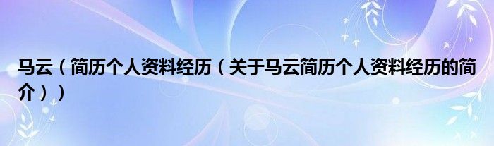 本文关于马云 简历 个人资料经历的简介就讲解完毕,希望对大家有所帮助。
