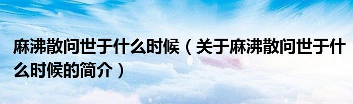 本文关于麻沸散问世于什么时候的简介就讲解完毕,希望对大家有所帮助。