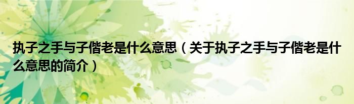 本文关于执子之手与子偕老是什么意思的简介就讲解完毕,希望对大家有所帮助。