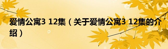 大家好,小安来为大家解答以上的问题。爱情公寓3 12集,关于爱情公寓3 12集的介绍很多人还不知道,现在让我们一起来看看吧!
