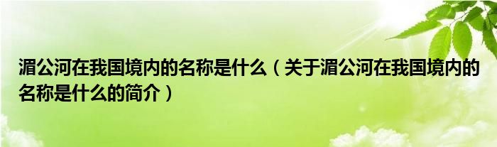 本文关于湄公河在我国境内的名称是什么的简介就讲解完毕,希望对大家有所帮助。