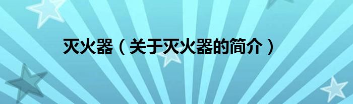 本文关于灭火器的简介就讲解完毕,希望对大家有所帮助。