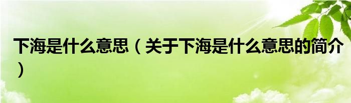 本文关于下海是什么意思的简介就讲解完毕,希望对大家有所帮助。