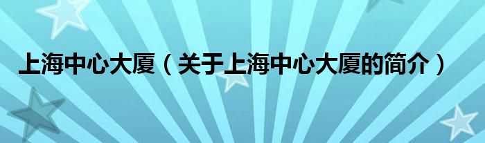 本文关于上海中心大厦的简介就讲解完毕,希望对大家有所帮助。