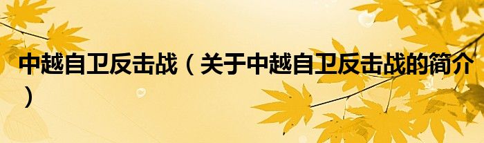 本文关于中越自卫反击战的简介就讲解完毕,希望对大家有所帮助。