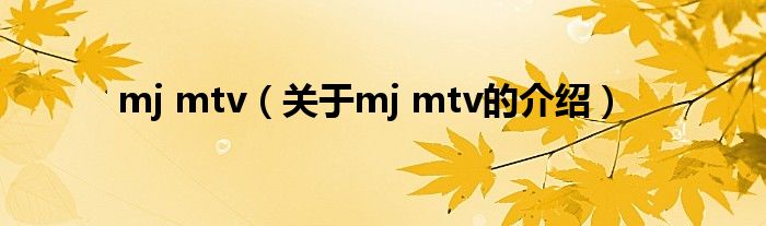大家好,小安来为大家解答以上的问题。mj mtv,关于mj mtv的介绍很多人还不知道,现在让我们一起来看看吧!