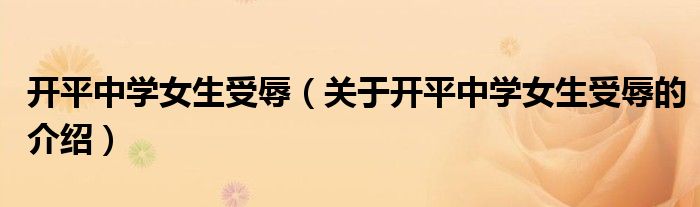 大家好,小安来为大家解答以上的问题。开平中学女生受辱,关于开平中学女生受辱的介绍很多人还不知道,现在让我们一起来看看吧!
