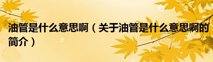 本文关于油管是什么意思啊的简介就讲解完毕,希望对大家有所帮助。