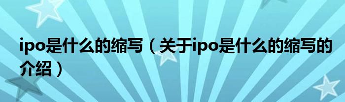 大家好,小安来为大家解答以上的问题。ipo是什么的缩写,关于ipo是什么的缩写的介绍很多人还不知道,现在让我们一起来看看吧!