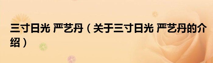 大家好,小安来为大家解答以上的问题。三寸日光 严艺丹,关于三寸日光 严艺丹的介绍很多人还不知道,现在让我们一起来看看吧!