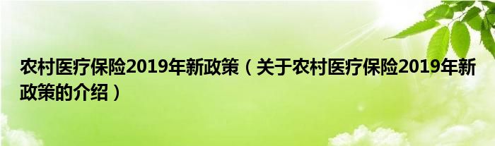 大家好,小安来为大家解答以上的问题。农村医疗保险2019年新政策,关于农村医疗保险2019年新政策的介绍很多人还不知道,现在让我们一起来看看吧!