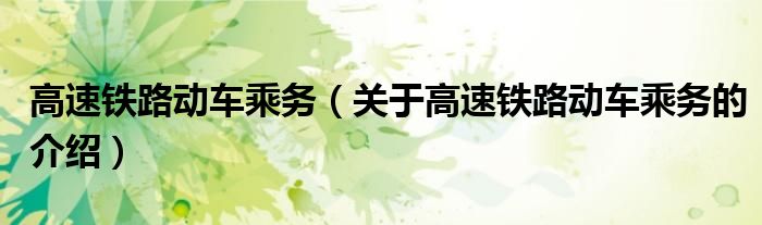大家好,小安来为大家解答以上的问题。高速铁路动车乘务,关于高速铁路动车乘务的介绍很多人还不知道,现在让我们一起来看看吧!