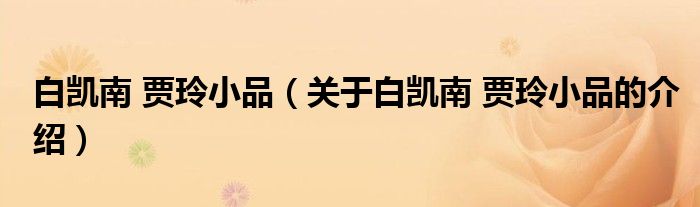 大家好,小安来为大家解答以上的问题。白凯南 贾玲小品,关于白凯南 贾玲小品的介绍很多人还不知道,现在让我们一起来看看吧!