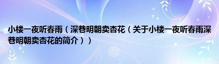 本文关于小楼一夜听春雨 深巷明朝卖杏花的简介就讲解完毕,希望对大家有所帮助。