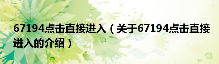 大家好,小安来为大家解答以上的问题。67194点击直接进入,关于67194点击直接进入的介绍很多人还不知道,现在让我们一起来看看吧!