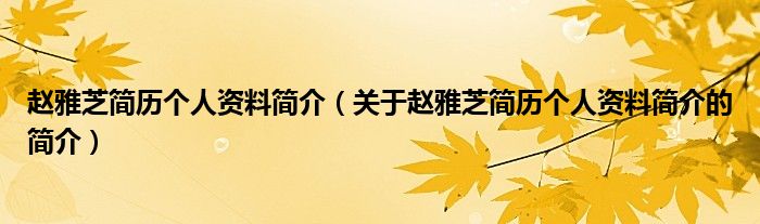 大家好,赵雅芝简历个人资料简介,关于赵雅芝简历个人资料简介的简介很多人还不知道,现在让我们一起来看看吧!