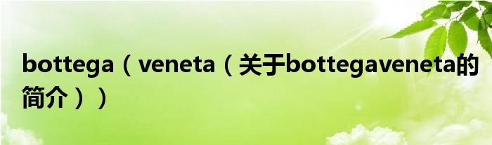 本文关于bottega veneta的简介就讲解完毕,希望对大家有所帮助。