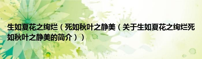 本文关于生如夏花之绚烂 死如秋叶之静美的简介就讲解完毕,希望对大家有所帮助。