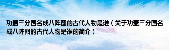 本文关于功盖三分国名成八阵图的古代人物是谁的简介就讲解完毕,希望对大家有所帮助。