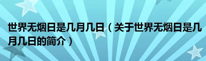 本文关于世界无烟日是几月几日的简介就讲解完毕,希望对大家有所帮助。