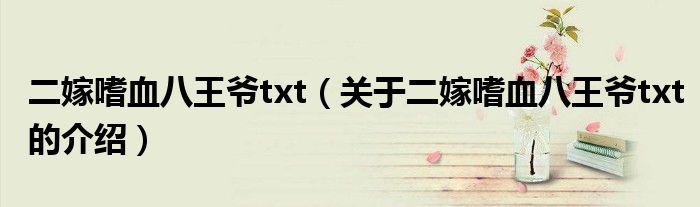 大家好,小安来为大家解答以上的问题。二嫁嗜血八王爷txt,关于二嫁嗜血八王爷txt的介绍很多人还不知道,现在让我们一起来看看吧!