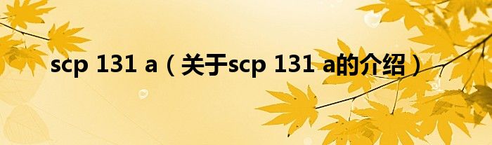 大家好,小安来为大家解答以上的问题。scp 131 a,关于scp 131 a的介绍很多人还不知道,现在让我们一起来看看吧!
