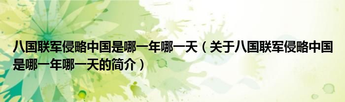 本文关于八国联军侵略中国是哪一年哪一天的简介就讲解完毕,希望对大家有所帮助。