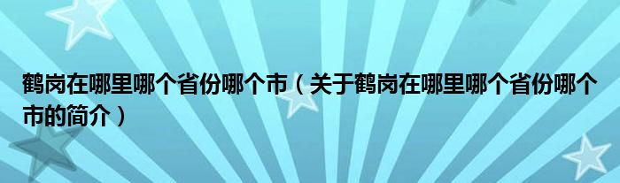本文关于鹤岗在哪里哪个省份哪个市的简介就讲解完毕,希望对大家有所帮助。