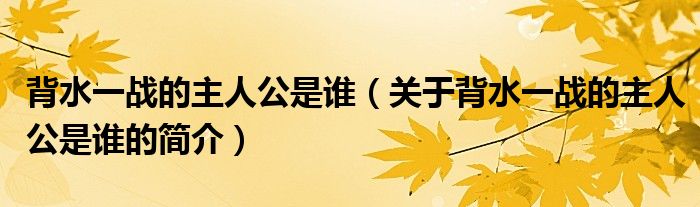 本文关于背水一战的主人公是谁的简介就讲解完毕,希望对大家有所帮助。
