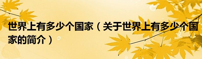大家好,世界上有多少个国家,关于世界上有多少个国家的简介很多人还不知道,现在让我们一起来看看吧!
