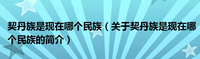 本文关于契丹族是现在哪个民族的简介就讲解完毕,希望对大家有所帮助。
