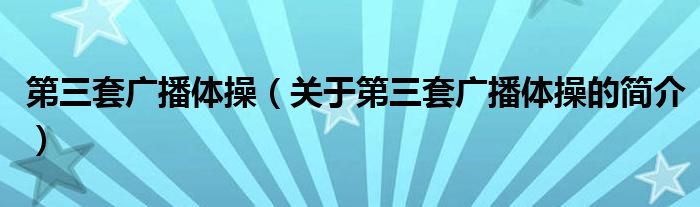 大家好,第三套广播体操,关于第三套广播体操的简介很多人还不知道,现在让我们一起来看看吧!