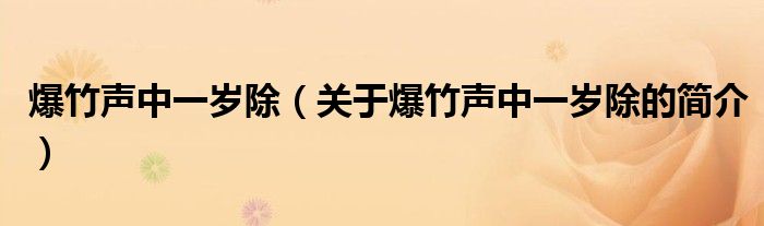 大家好,爆竹声中一岁除,关于爆竹声中一岁除的简介很多人还不知道,现在让我们一起来看看吧!