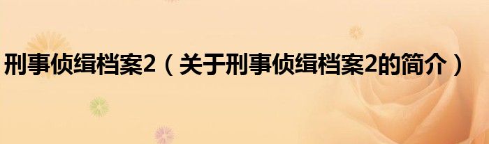 大家好,刑事侦缉档案2,关于刑事侦缉档案2的简介很多人还不知道,现在让我们一起来看看吧!