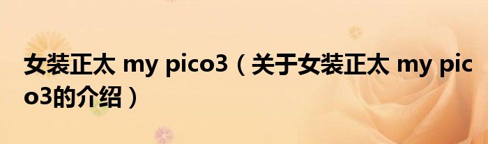 大家好,小安来为大家解答以上的问题。女装正太 my pico3,关于女装正太 my pico3的介绍很多人还不知道,现在让我们一起来看看吧!
