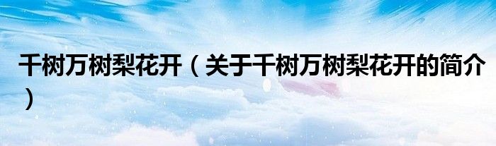 大家好,千树万树梨花开,关于千树万树梨花开的简介很多人还不知道,现在让我们一起来看看吧!