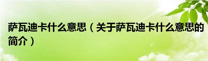 本文关于萨瓦迪卡什么意思的简介就讲解完毕,希望对大家有所帮助。