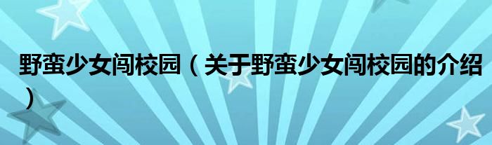 大家好,小安来为大家解答以上的问题。野蛮少女闯校园,关于野蛮少女闯校园的介绍很多人还不知道,现在让我们一起来看看吧!