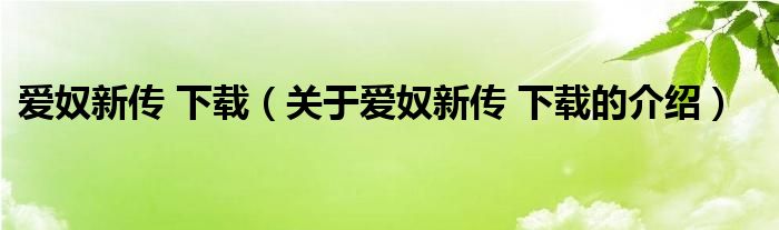 大家好,小安来为大家解答以上的问题。爱奴新传 下载,关于爱奴新传 下载的介绍很多人还不知道,现在让我们一起来看看吧!